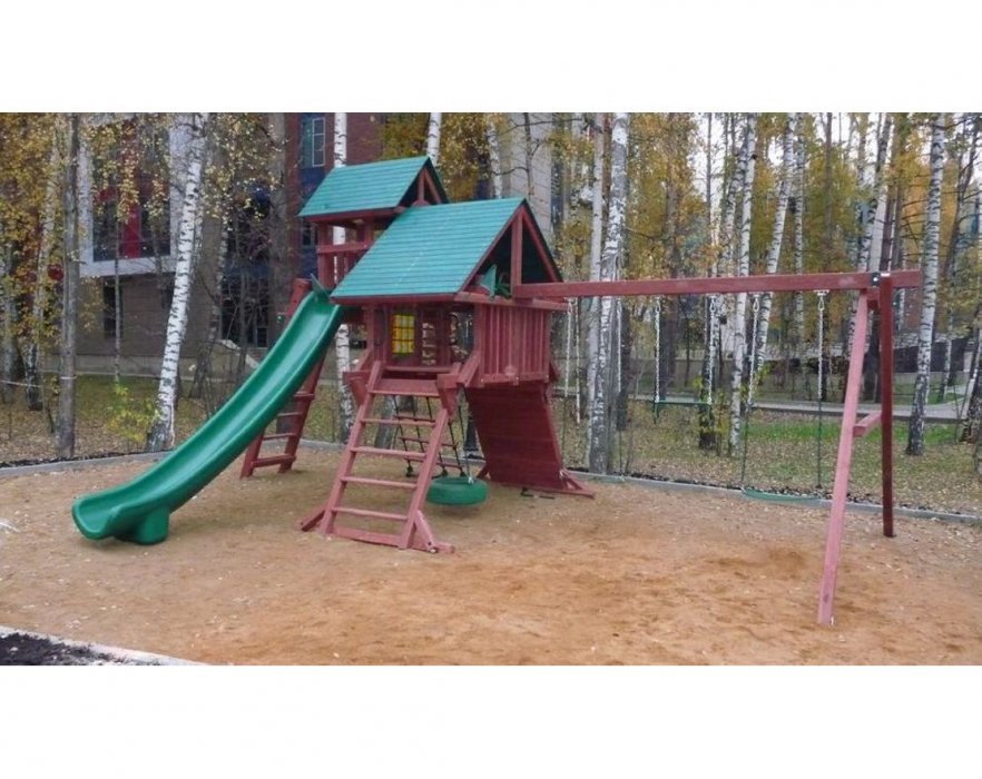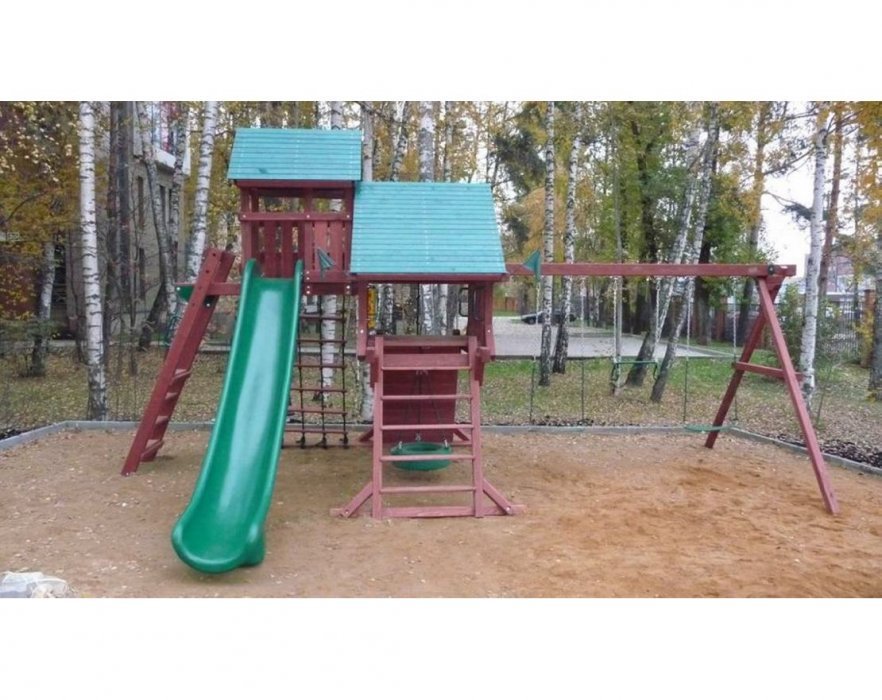 Площадка Гигант 3 идеально подходит для отдыха как одного ребенка, так и целой компании малышей. Рекомендуемый возраст от 3 до 11 лет. Площадка изготовлена из красного дерева (секвойя и кедр) и пропитана защитным составом.