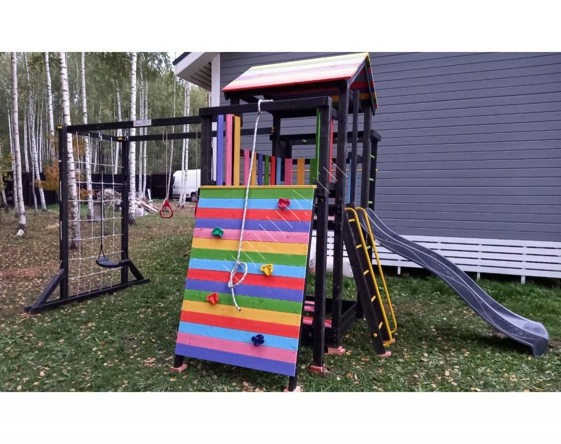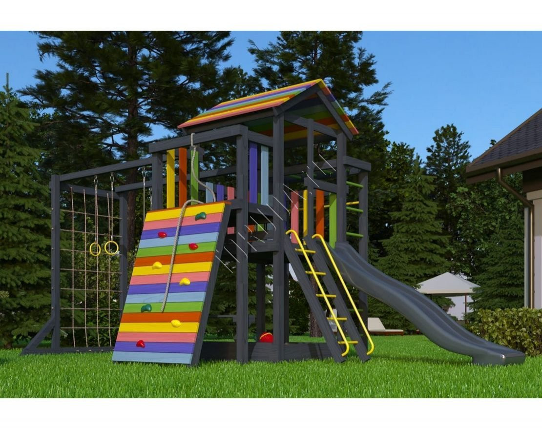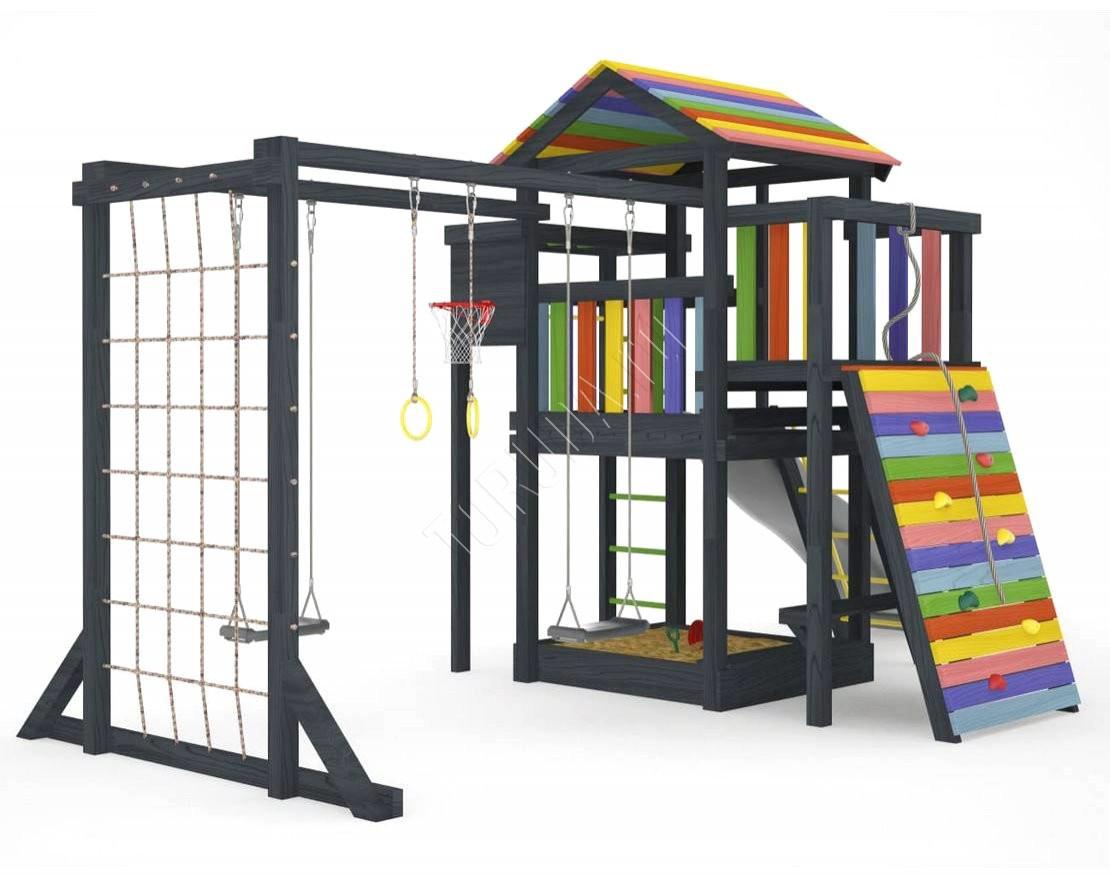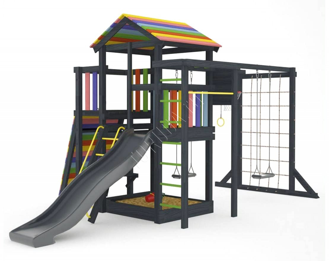 Детская площадка обладает довольно широким функционалом, предназначена для дачи, коттеджа.