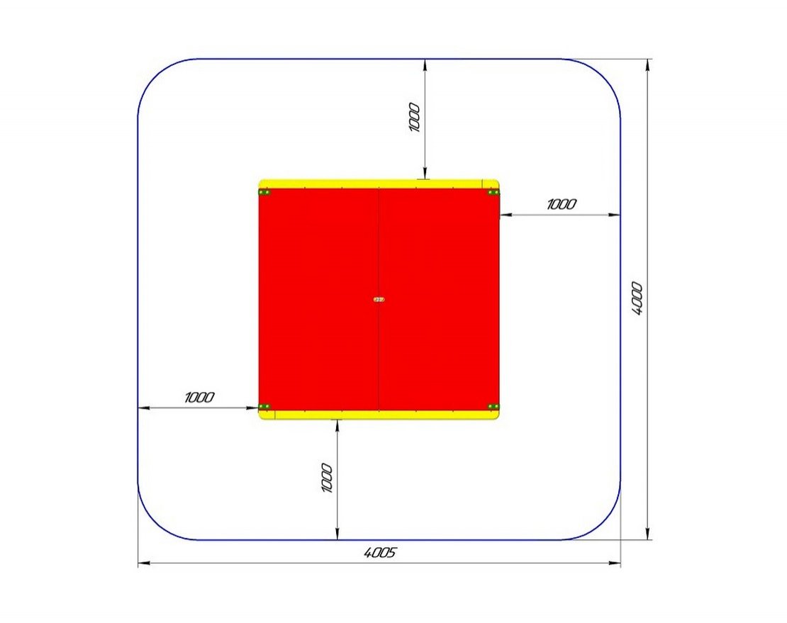 • Занимаемая площадь с учетом зон безопасности и приземления: 4005 × 4000 мм