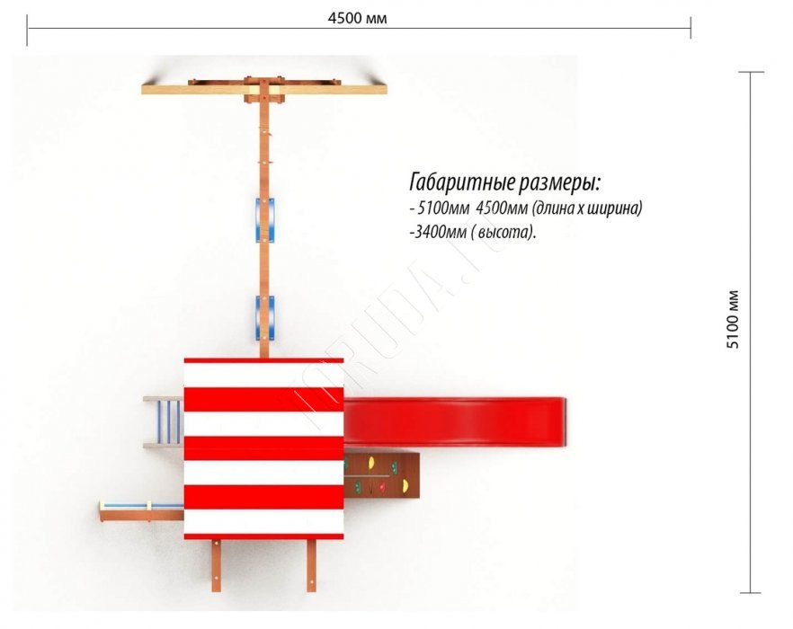 Обратите внимание! Дополнительные аксессуары: колокол, штурвал, бинокль или баскетбольное кольцо не входят в стоимость площадки и приобретаются отдельно.