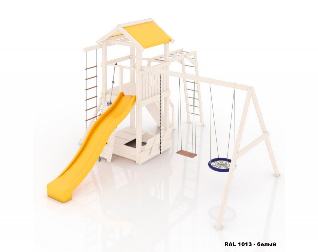 Максимально возможная комплектация в сочетании с качелями-гнездом. Детская площадка в полной комплектации позволит вашим детям разнообразить свои игры на свежем воздухе, а так же пригласить своих друзей для веселого времяпрепровождения. Места хватит всем!