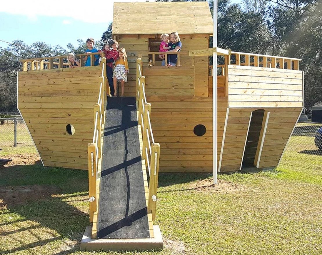 Детская площадка TORUDA WOOD Ковчег изобилует входами и выходами, а также большим пространством на которм, ваш ребенок будет с удовольствием играть. Шесть входов и выходов и площадь 85 м2 на двух этажах.