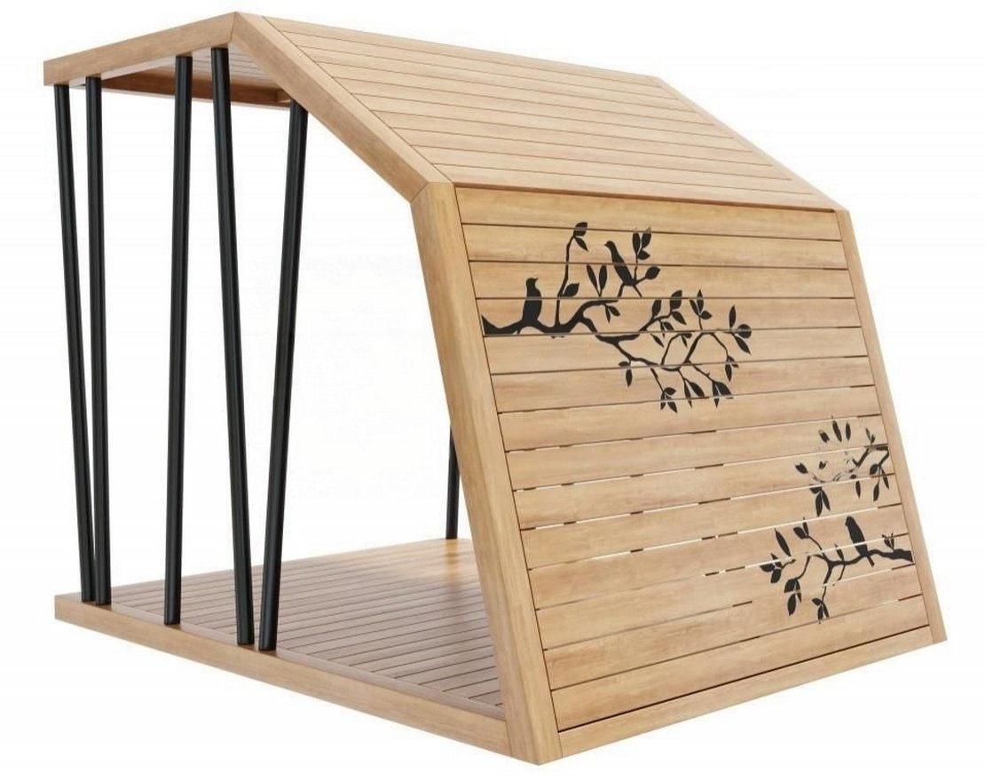 Крыша, стенка и пол: Брус из хвойных пород древесины. Покрытие - атмосферостойкая лессирующая акриловая пропитка с лаком. Стандартные цвета: Палисандр, Махагон, Тик.