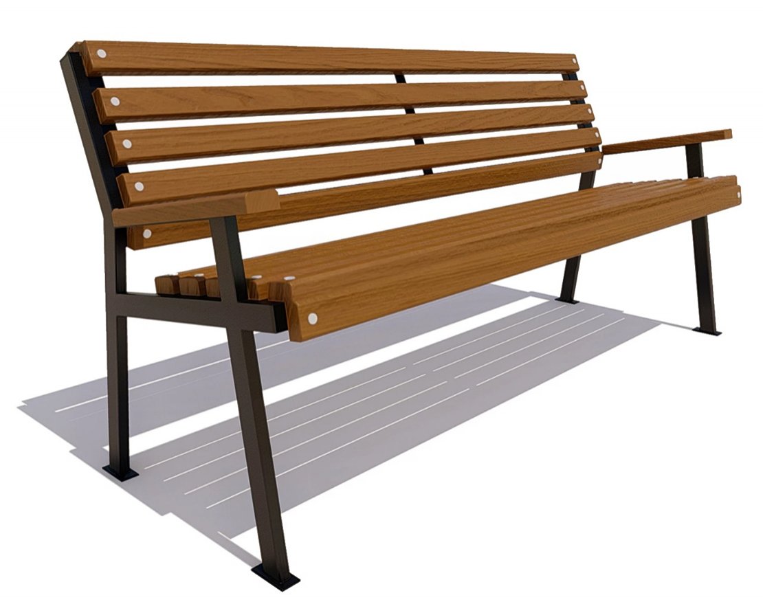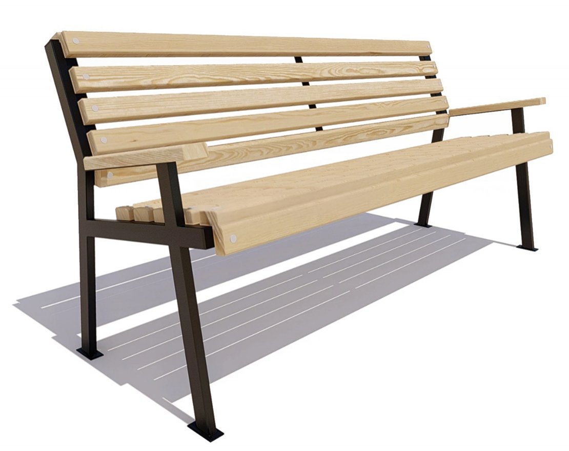 Каркас выполнен из стального профиля. Покрыт порошковой полимерной краской. Стандартный цвет по умолчанию – черный муар. Возможность выбора цвета по шкале RAL. Сиденье и спинка: Брус из хвойных пород древесины, обработан экологичными инновационными лакокрасочными материалами, что подтверждает Свидетельство ЕвАзЭС. Стандартный цвет по умолчанию – палисандр. Возможность выбора цвета из палитры. Тип крепления: анкерный.