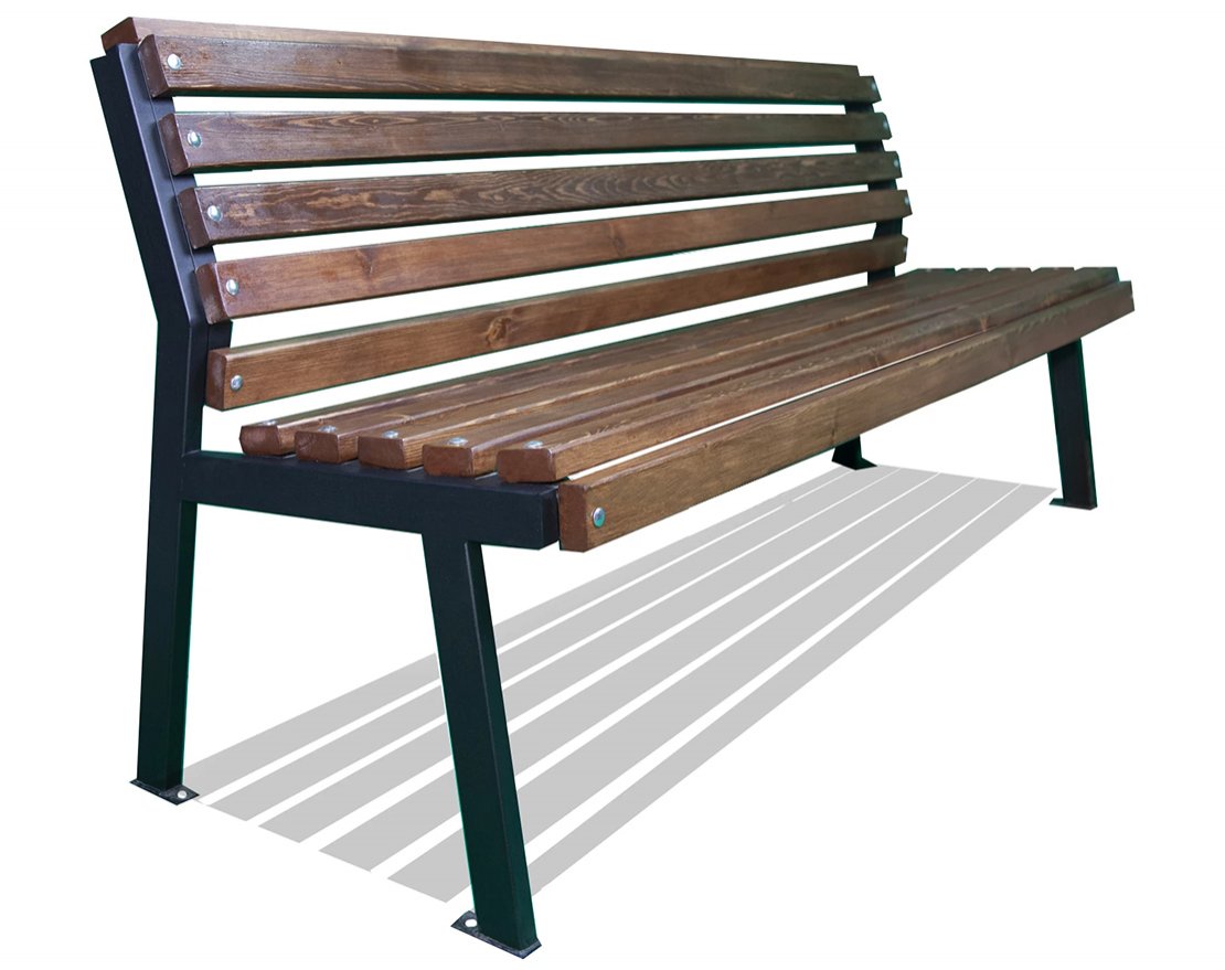 Каркас выполнен из стального профиля. Покрыт порошковой полимерной краской. Стандартный цвет по умолчанию – черный муар. Возможность выбора цвета по шкале RAL. Сиденье и спинка: Брус из хвойных пород древесины, обработан экологичными инновационными лакокрасочными материалами, что подтверждает Свидетельство ЕвАзЭС. Стандартный цвет по умолчанию – палисандр. Возможность выбора цвета из палитры. Тип крепления: анкерный.